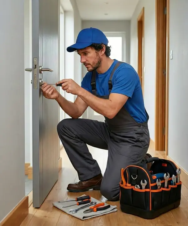 Мастер выяснит причину: износ сувальд, смещение дверного полотна или засорение механизма. После диагностики отрегулирует, смажет или заменит изношенные детали.
